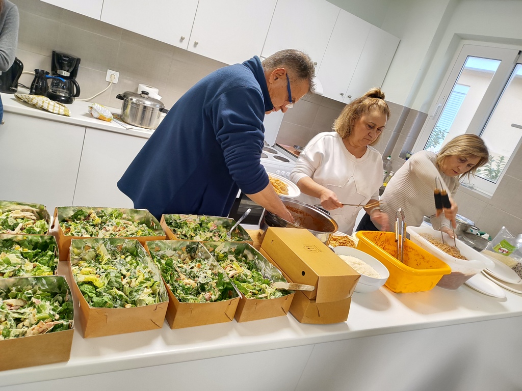 Η μέρα όμως δεν τελείωσε έτσι για τα παιδιά του ΕΚΑΜΕ…. Ακολούθησε γεύμα φτιαγμένο με πολλή αγάπη από το φίλο κο. Δημήτρη Παπαδόπουλο (Λαγουδέρα) και τις φίλες κα. Σωτηρία & κα. Μαριάννα Παγανού και τη διατροφολόγο κα. Βασιλική Γιαννοπούλου. Και επειδή ένα καλό φαγητό χρειάζεται και γλέντι, δεν έλειψε η μουσική, ο χορός και το τραγούδι…