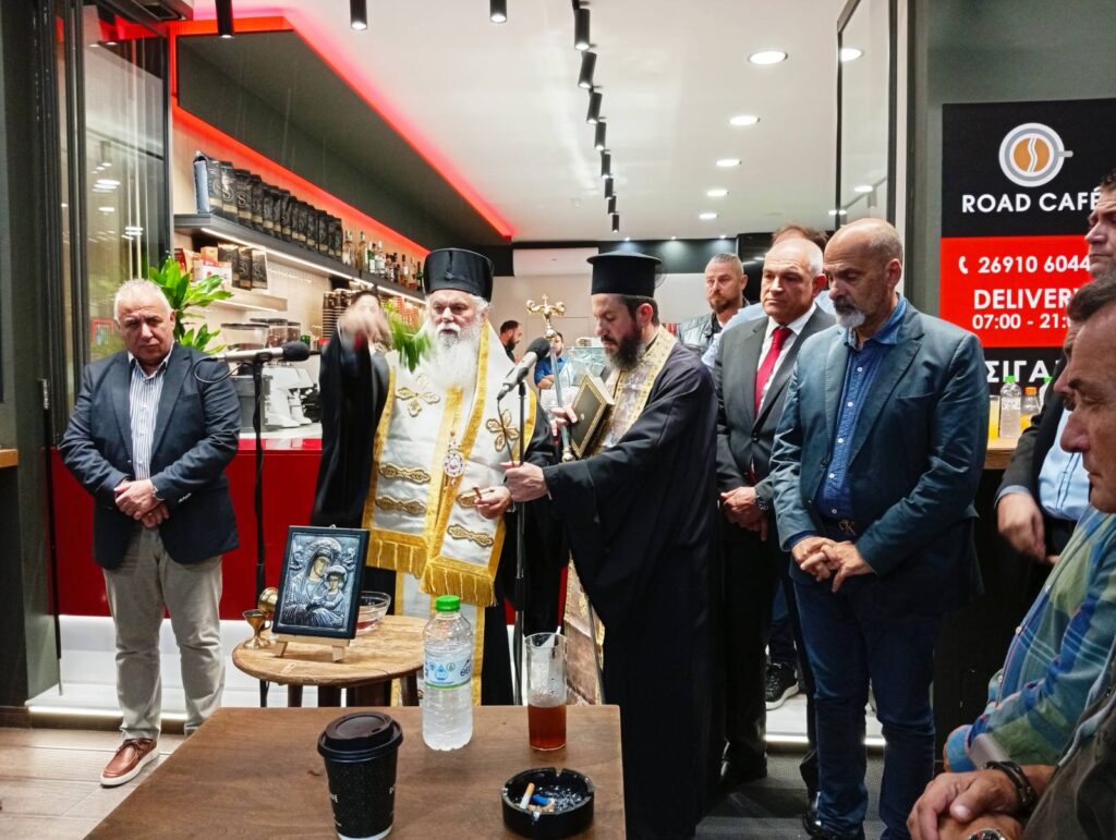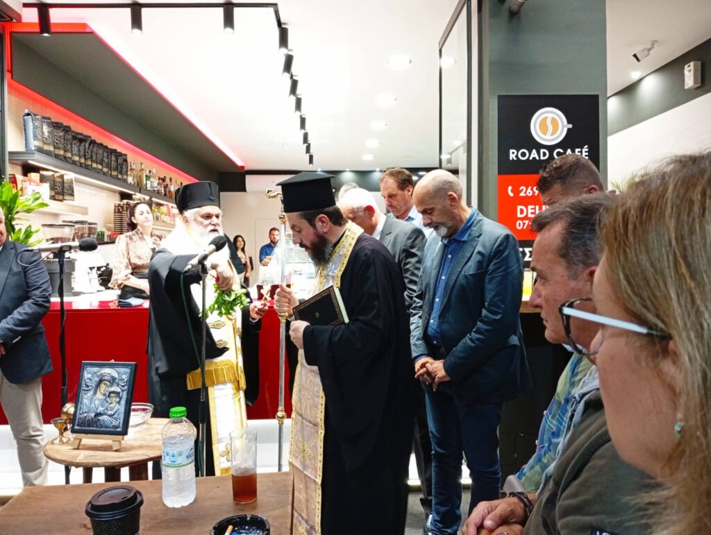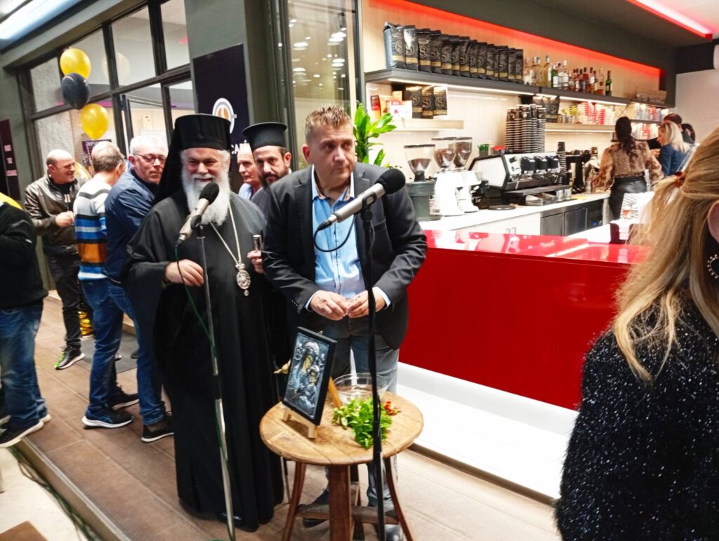 Η βραδιά ξεκίνησε με τον αγιασμό που τέλεσε ο Σεβασμιώτατος Μητροπολίτης Καλαβρύτων και Αιγιαλείας κ.κ. Ιερώνυμος, ο οποίος με τις πατρικές του ευχές ευλόγησε το νέο κατάστημα και ευχήθηκε υγεία, δύναμη και καλή πορεία στους ιδιοκτήτες και το προσωπικό.