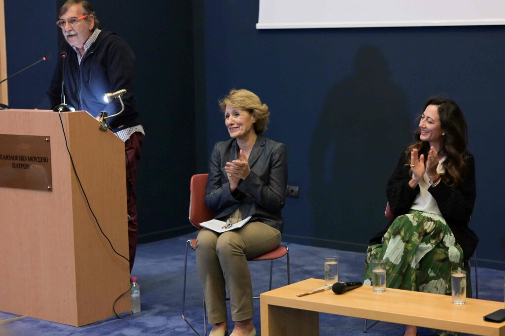 Την εκδήλωση χαιρέτησε επίσης η δημοσιογράφος Κατερίνα Λυμπεροπούλου, η οποία ανέφερε πως «Με πυξίδα το έργο του RobertMcCabe δουλέψαμε οι συγγραφείς της έκδοσης  ” Η Ελλάδα μετά τον πόλεμο. Τα  χρόνια της ελπίδας” (Εκδ. Πατάκη/ AbbevillePress, 2023) στην πολύμηνη, τόσο αποδοτική κι αξέχαστη συνεργασία μας – πόσο μεγάλη τιμή, αλήθεια, να δουλεύω μαζί με τον RobertMcCabe και τον καθηγητή του Harvard, Πρόεδρο του Ευρωπαϊκού Πολιτιστικού Κέντρου Δελφών, Παναγιώτη Ροϊλό! Κι έχοντας τη σημασία αυτής της παρακαταθήκης του έργου του Robert κατά νου, συνέλεξα μαρτυρίες Πατρινών, αναμνήσεις “από πρώτο χέρι”, αλλά κι ιστορίες που άκουσαν από άλλους σχετικά με την, μεταπολεμικά δημιουργηθείσα, Πορθμειακή γραμμή Ρίου – Αντιρρίου για να πλαισιώσω με κείμενα την σειρά φωτογραφιών  του Robert από την εν λόγω γραμμή. Ένα πρωτότυπο και ξεχωριστό τμήμα της έκθεσης στο Αρχαιολογικό Μουσείο Πάτρας που δεν θα ταίριαζε πουθενά αλλού τόσο καλά όσο εδώ».