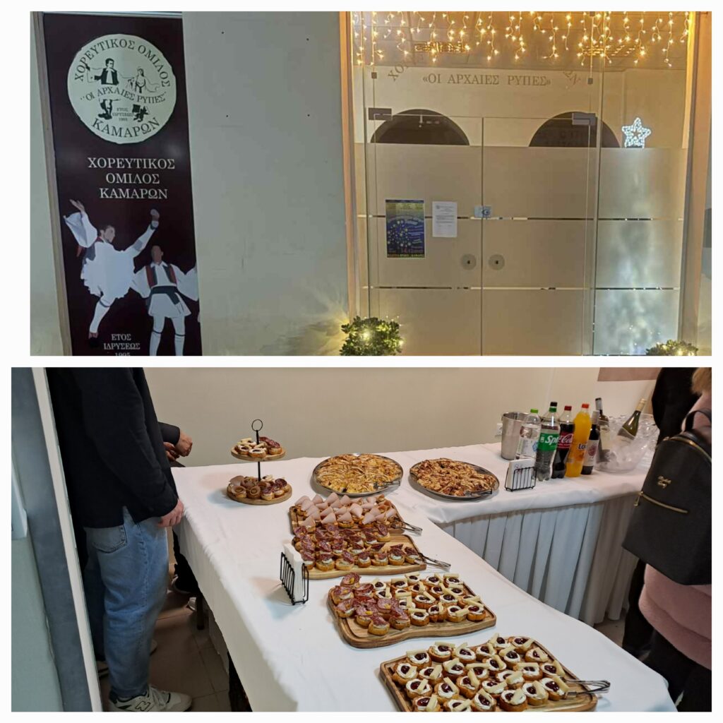Πλήθος κόσμου, παρά τις αντίξοες καιρικές συνθήκες, τίμησε με τη παρουσία του, το απόγευμα της Κυριακής 11 Ιανουαρίου, τα εγκαίνια του νέου γραφείου του Χορευτικού Ομίλου Καμαρών «Οι Αρχαίες Ρύπες» και τον αγιασμό της βασιλόπιτας. Με πρώτο τον ιερέα του χωριού αιδεσιμότατο Μπαμπίλη Στέφανο, χορευτές, μέλη, φίλοι και νέοι γείτονες είχαν την ευκαιρία να κεραστούν και να ανταλλάξουν ευχές για το νέο χρόνο. Χαιρετισμό και ευχές απηύθυναν οι αντιδήμαρχοι κ.κ. Ντίνος Γεώργιος και Τσερεντζούλιας Χρήστος καθώς και ο δημοτικός σύμβουλος κ. Νιγιάννης Ανδρέας. Επιπρόσθετα τις ευχές του έστειλε ο πρόεδρος της Τ.Κ. Καμαρών κ. Ρογκάλας Παναγιώτης.