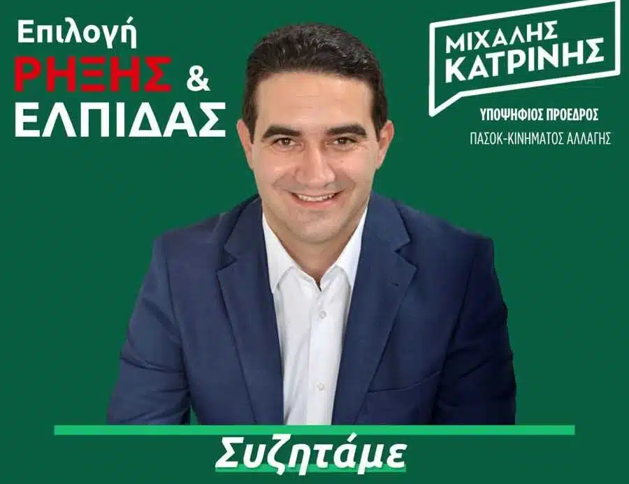 Με το μήνυμα «Συζητάμε με τους πολίτες» ο Μιχάλης Κατρίνης διοργανώνει ανοιχτή συγκέντρωση και συζήτηση με τους πολίτες στις 18.30 στο Σταυροδρόμι Αχαΐας, Δημαρχείο Τριταίας:
