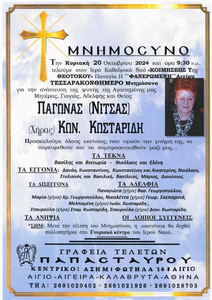 ΑρχικήΑίγιο - Αχαΐα Κηδείες - Μνημόσυνα Μνημόσυνα που θα τελεστούν το Σάββατο 19 και την Κυριακή 20 Οκτωβρίου Από Aigio Voice 17 Οκτωβρίου 2024 FacebookTwitterWhatsAppEmail Βρείτε μας στο Google News. Πατήστε εδώ! TagsΑΙΓΙΑΛΕΙΑΑΙΓΙΟΜΝΗΜΟΣΥΝΑ-ΓΡΑΦΕΙΑ ΤΕΛΕΤΩΝ ΠΑΠΑΣΤΑΥΡΟΥ μερίδιο FacebookTwitterWhatsAppEmail Προηγούμενο άρθροΣτο 3,1% ο πληθωρισμός τον Σεπτέμβριο και “οι πιο ισχυρές” ανατιμήσεις στα τρόφιμα!Επόμενο άρθροN. Καραΐσκος: Καμία ανησυχία για την επόμενη μέρα στο Δήμο… Aigio Voicehttps://aigiovoice.gr Σχετικά άρθρα Αγροτικά Ανυποχώρητοι οι αγρότες: Δεν πάνε στο Μαξίμου, κλιμακώνουν τις κινητοποιήσεις – Ποια είναι τα αιτήματά τους Αθλητικά Β’ ΚΑΤΗΓΟΡΙΑ: ΑΕ Αιγίου και Θύελλα συνεχίζουν νικηφόρα στον Β’ όμιλο Αθλητικά Α’ ΚΑΤΗΓΟΡΙΑ: Ντέρμπι, ανατροπές και θρίαμβοι η αγωνιστική του Σαββατοκύριακου - Advertisement - - Advertisement - - Advertisement - - Advertisement - Δείτε ακόμα Αγροτικά Ανυποχώρητοι οι αγρότες: Δεν πάνε στο Μαξίμου, κλιμακώνουν τις κινητοποιήσεις – Ποια είναι τα αιτήματά τους Αθλητικά Β’ ΚΑΤΗΓΟΡΙΑ: ΑΕ Αιγίου και Θύελλα συνεχίζουν νικηφόρα στον Β’ όμιλο Αθλητικά Α’ ΚΑΤΗΓΟΡΙΑ: Ντέρμπι, ανατροπές και θρίαμβοι η αγωνιστική του Σαββατοκύριακου Αίγιο - Αχαΐα ΑΙΓΙΟ: Ανοιχτά τα εμπορικά καταστήματα αύριο Κυριακή Πολιτική Μ. Κατρίνης: Χωρίς κανόνες, διαφάνεια και στρατηγική η Ελλάδα επί Νέας Δημοκρατίας