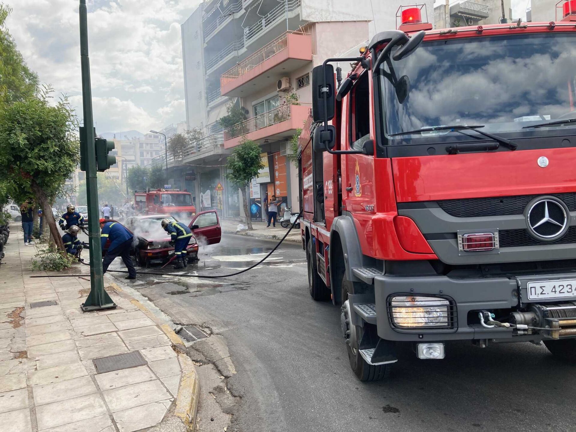 Στην περιοχή αλλά και στην Πυροσβεστική Υπηρεσία σήμανε συναγερμός αφού στο ΙΧ επέβαιναν και δύο μικρά παιδιά, ηλικίας 6 ετών περίπου. Και το όχημα οδηγούσε η γιαγιά τους, που ευτυχώς αποδείχθηκε ικανότατη αφού παρά το σοκ, έδρασε αστραπιαία βγάζοντας τα παιδιά από το αυτοκίνητο που σημειωτέον ήταν με δύο πόρτες και τα δύο παιδάκια βρίσκονταν στα πίσω καθίσματα! Στη συνέχεια η φωτιά κυρίευσε την καμπίνα και το όχημα έγινε παρανάλωμα του πυρός.