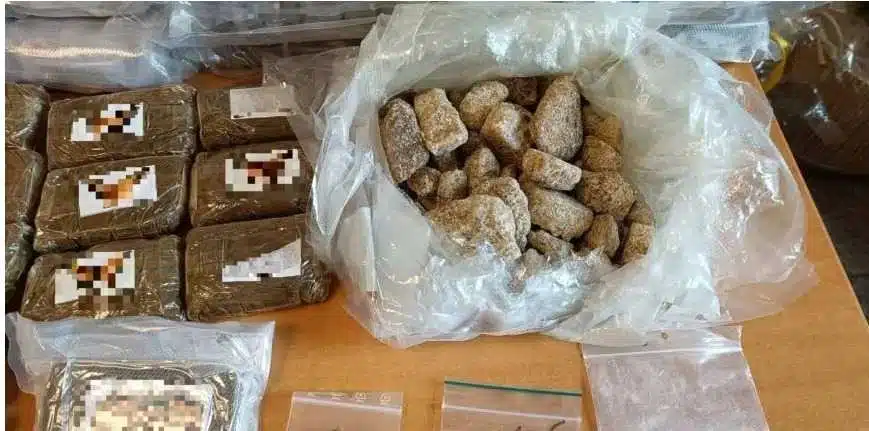 Τα πέντε χαρτοκιβώτια που εντοπίστηκαν στο φορτίο, περιείχαν 50.825 γρ κάνναβης σε μορφή σοκολάτας, 552γρ κοκαΐνης, 1.068γρ της ναρκωτικής ουσία MDMA – γνωστή και ως «κοκαΐνη των φτωχών» -σε μορφή βράχου, τρεις συσκευασίες 20,9γρ λευκής και κόκκινης κρυσταλλικής σκόνης και 500 τεμάχια εμποτισμένα με LSD. Τα ναρκωτικά επρόκειτο να προωθηθούν σε περιοχές της Αττικής.