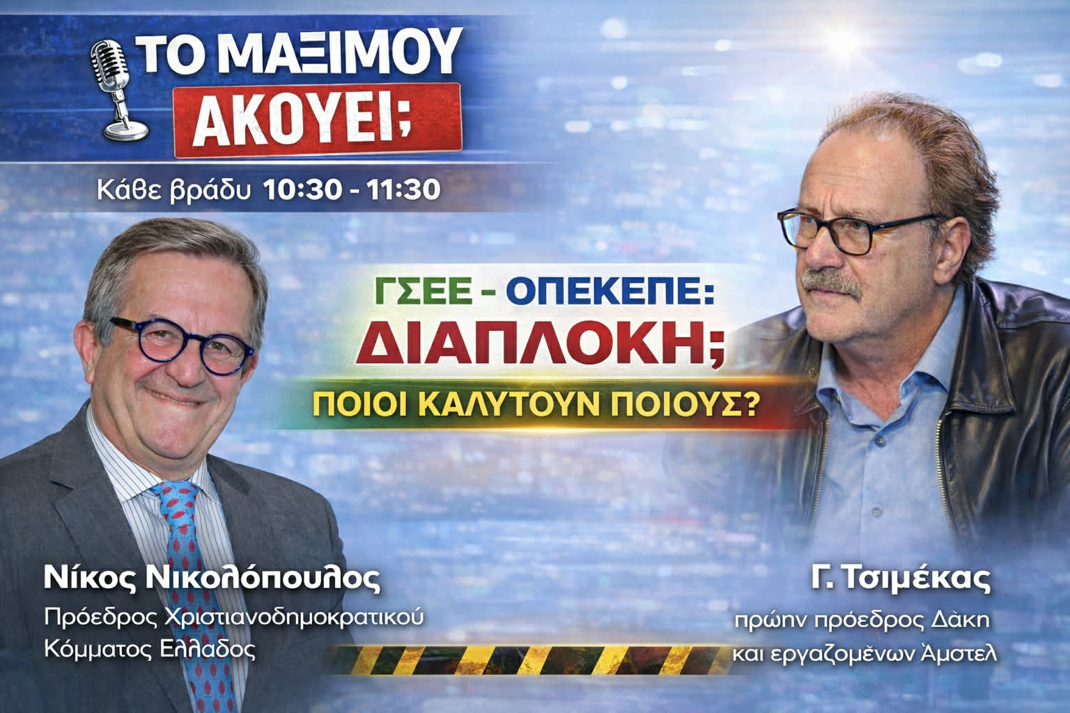 Κεντρικό ερώτημα της εκπομπής: «ΓΣΕΕ – ΟΠΕΚΕΠΕ: Διαπλοκή; Ποιοι καλύπτουν ποιους;»