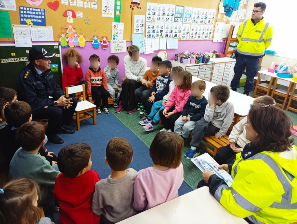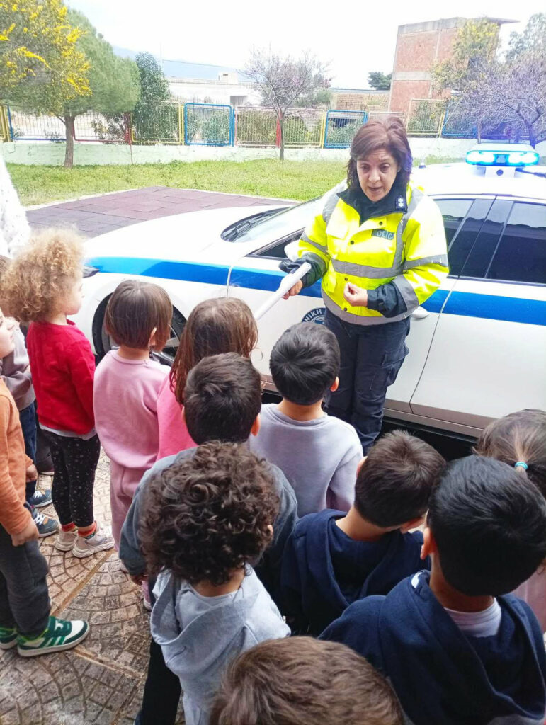 Την Παρασκευή 27 Μαρτίου 2026 πραγματοποιήθηκε στο Νηπιαγωγείο Καμαρών Αιγιαλείας ενημερωτική ομιλία για θέματα τροχαίας αγωγής, καθώς και παρουσίαση του επαγγέλματος του αστυνομικού, σε 25 μικρούς μαθητές.
