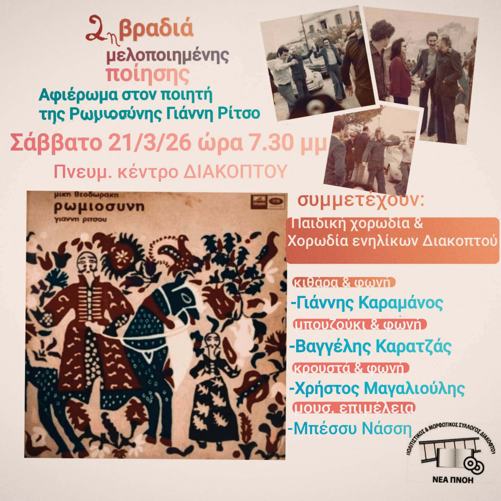 Πολιτιστικός Σύλλογος Διακοπτού ΝΕΑ ΠΝΟΗ 21 Μαρτίου Παγκόσμια Ημέρα Ποίησης