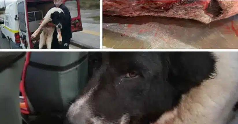 Το μεγαλόσωμο ζώο, σύμφωνα με πληροφορίες, είναι σε πολύ άσχημη κατάσταση καθώς έχει υποστεί αφαίρεση δέρματος και μεγάλα εγκαύματα και στα τέσσερα πόδια του. Μετά τις πρώτες βοήθειες φιλοξενείται και λόγω του σοκ που έχει υποστεί, δείχνει αποπροσανατολισμένο και πολύ τρομαγμένο.