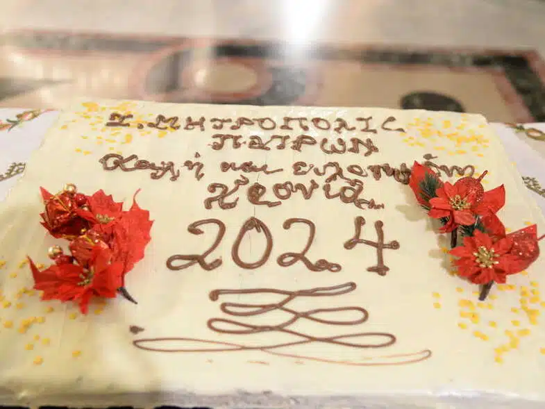 Είθισται στην ευλογία της βασιλόπιτας της Μητροπόλεως Πατρών, την παραμονή της Πρωτοχρονιάς το απόγευμα να παρευρίσκονται ιερείς από όλες τις ενορίες αλλά και πολύς κόσμος και όλοι φεύγουν με ένα κομμάτι από τη βασιλόπιτα και τις ευχές του σεβασμιοτάτου Μητροπολίτη Πατρών κ.κ. Χρυσοστόμου. Αναμένεται να είναι παρών και ο Θεοφιλέστατος Επίσκοπος Κερνίτσης κ. Χρύσανθος.
