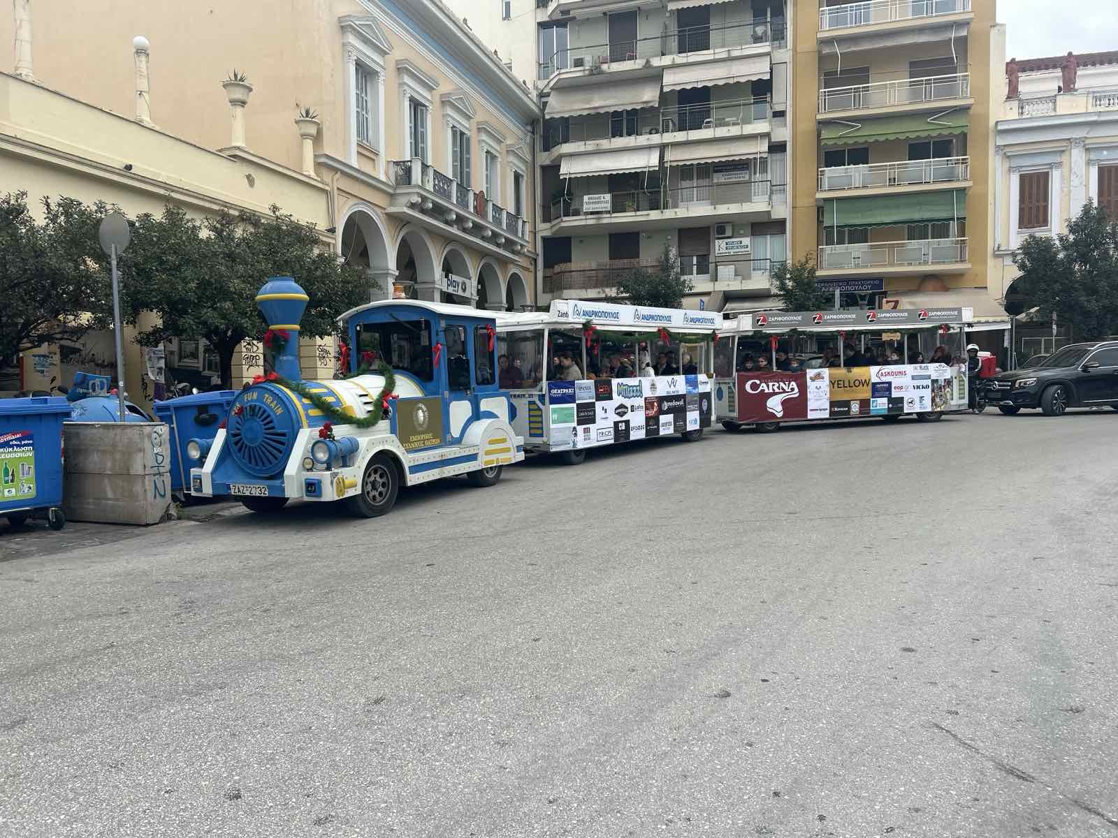 Ο Εμπορικός και Εισαγωγικός Σύλλογος Πατρών ανακοίνωσε ότι το Χριστουγεννιάτικο Τρενάκι της πόλης θα λειτουργεί δωρεάν για το κοινό, κατά τη διάρκεια των ωρών λειτουργίας των καταστημάτων και για μισή ώρα μετά το κλείσιμό τους.
