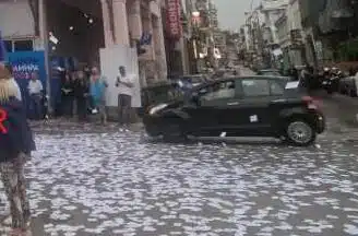 Τρελά πανηγύρια στην οδό Αγ. Ανδρέου στην Πάτρα έξω από το εκλογικό κέντρο της Νέας Δημοκρατίας. Μόλις έγινε γνωστό το exit poll, πέταξαν χιλιάδες φέιγ βολάν και ακούγονταν τα τραγούδια από τα ηχεία.