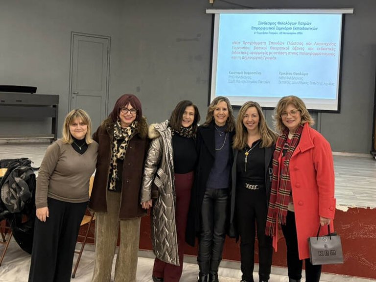 Με μεγάλη επιτυχία πραγματοποιήθηκε την περασμένη Πέμπτη 22 Ιανουαρίου 2026 στην αίθουσα εκδηλώσεων του 6ου Γυμνασίου Πατρών επιμορφωτικό σεμινάριο με θέμα: «Νέα Προγράμματα Σπουδών Γλώσσας και Λογοτεχνίας Γυμνασίου: βασικοί θεωρητικοί άξονες και ενδεικτικές διδακτικές εφαρμογές με εστίαση στους πολυγραμματισμούς και τη Δημιουργική Γραφή».