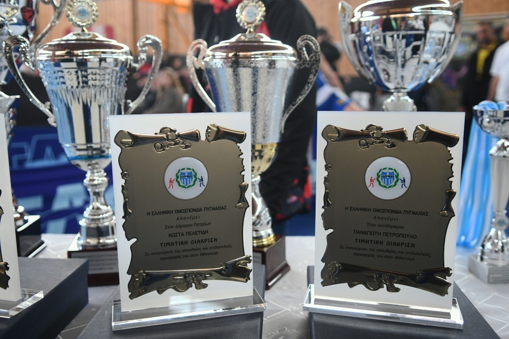Την τελευταία μέρα των αγώνων η Ελληνική Ομοσπονδία Πυγμαχίας απένειμε τιμητικές πλακέτες στον Δήμαρχο Πατρέων Κώστα Πελετίδη και στον Αντιδήμαρχο Αθλητισμού Τάκη Πετρόπουλο «για τη στήριξη που παρέχουν στην Πυγμαχία».