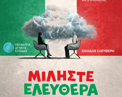 Η Περιφέρεια Δυτικής Ελλάδας παρουσιάζει την καυστική κωμωδία «ΜΙΛΗΣΤΕ ΕΛΕΥΘΕΡΑ» σε σκηνοθεσία Μίλτου Νίκα την Παρασκευή 3 Απριλίου 2026, στις 9:15 το βράδυ στο θέατρο ΕΠΙΚΕΝΤΡΟ+.