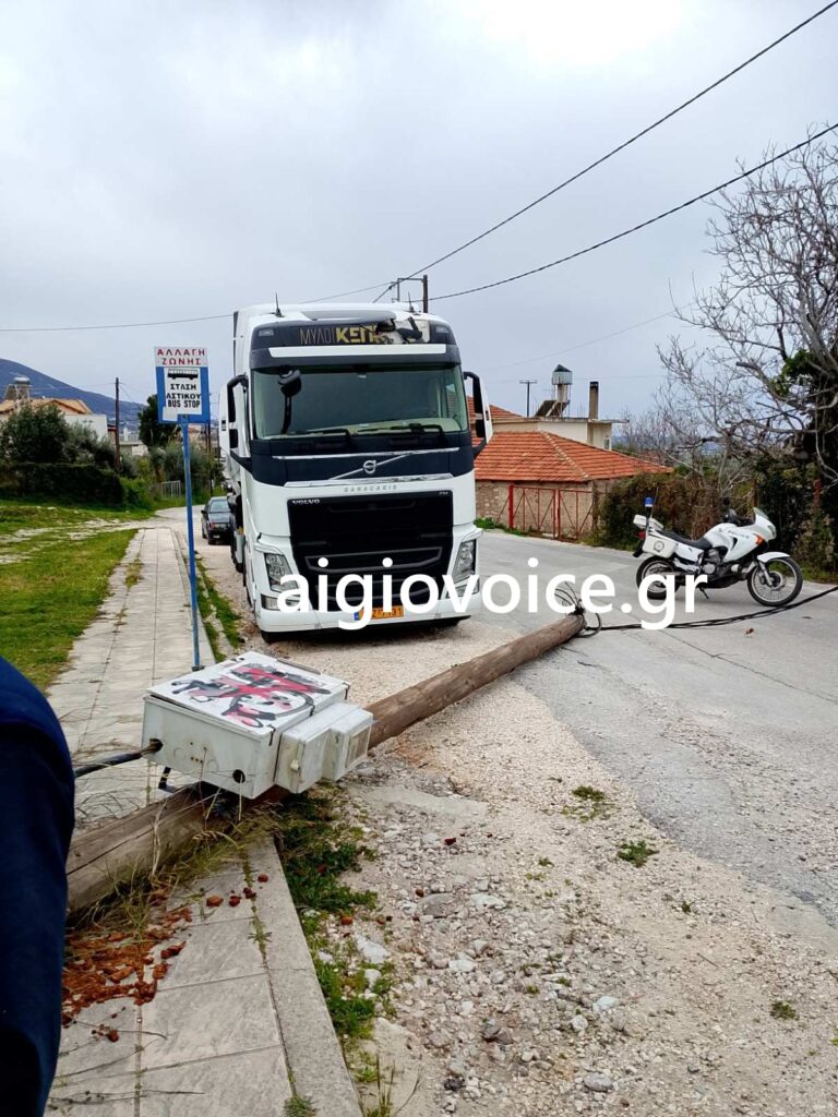 Μάλιστα η κολώνα έπεσε μπροστά από διερχόμενο φορτηγό όμως ο οδηγός του αντελήφθη εγκαίρως και σταμάτησε πριν την πτώση της πάνω στο όχημα.