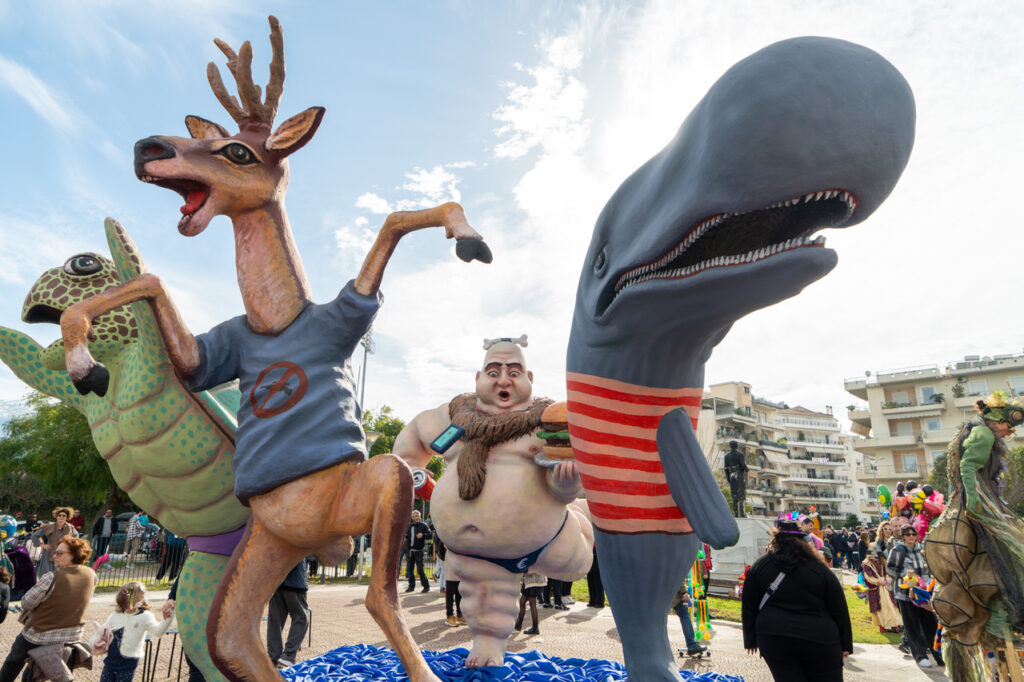 –Παρουσία καλλιτεχνών τσίρκου: ξυλοπόδαροι, μπάλα ισορροπίας, ζογκλέρ και ξυλοπόδαρος Τζίτζικας – μασκότ του Καρναβαλιού των Μικρών, ενσαρκωμένη από τη Μαρία Βάρσου των Saltibagos.