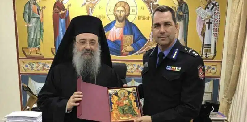 Ἐπίσης, ὁ Σεβασμιώτατος ἐξέφρασε γιά μιά ἀκόμη φορά τίς εὐχαριστίες του πρός τόν συγκεκριμένο ὑψηλόβαθμο Ἀξιωματικό καί στό Πυροσβεστικό Σῶμα γενικῶς γιά τήν μεγάλη προσφορά τους, στόν τόπο μας καί στήν Πατρίδα μας γενικώτερα, σέ ὧρες δύσκολες καί τοῦ προσέφερε ὡς εὐλογία ἱεράν Εἰκόνα τοῦ Ἀπόστόλου Ἀνδρέου.