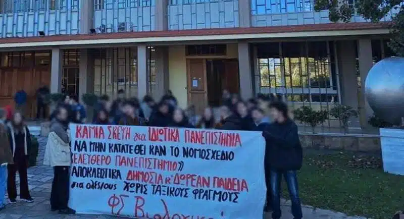 Η εργατική τάξη μαζί με τους φοιτητές και τους μαθητές δεν θα επιτρέψουμε το άδικο να γίνει νόμος.Πάρτε τώρα πίσω το απαράδεκτο νομοσχέδιο για ιδιωτικά πανεπιστήμια.