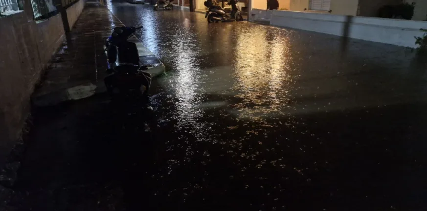 Κάθε φορά που πέφτει έντονη βροχή, η Ελευθερίου Βενιζέλου μετατρέπεται σε μια μικρή… Βενετία. Οι κάτοικοι έχουν κυριολεκτικά οχυρωθεί μέσα στα ίδια τους τα σπίτια. Οπως καταγγέλλουν, η περιοχή στερείται βασικών αντιπλημμυρικών υποδομών. Οι δρόμοι είναι κατασκευαστικά προβληματικοί, οι κλίσεις τραβούν τα νερά προς τα σπίτια αντί να τα απομακρύνουν, και τα ακάθαρτα φρεάτια δεν έχουν καμία δυνατότητα απορρόφησης.