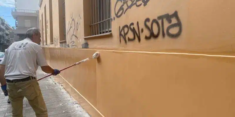 Όμως αυτό που αποτελεί σημείο αιχμής και πυροδοτεί συζητήσεις μεταξύ περιοίκων τις τελευταίες ημέρες, είναι… πόση πολλή μπογιά έχει χρειαστεί ο εργολάβος ώστε να καλύπτει τα συνθήματα που γράφονται στους τοίχους, ξανά και ξανά.