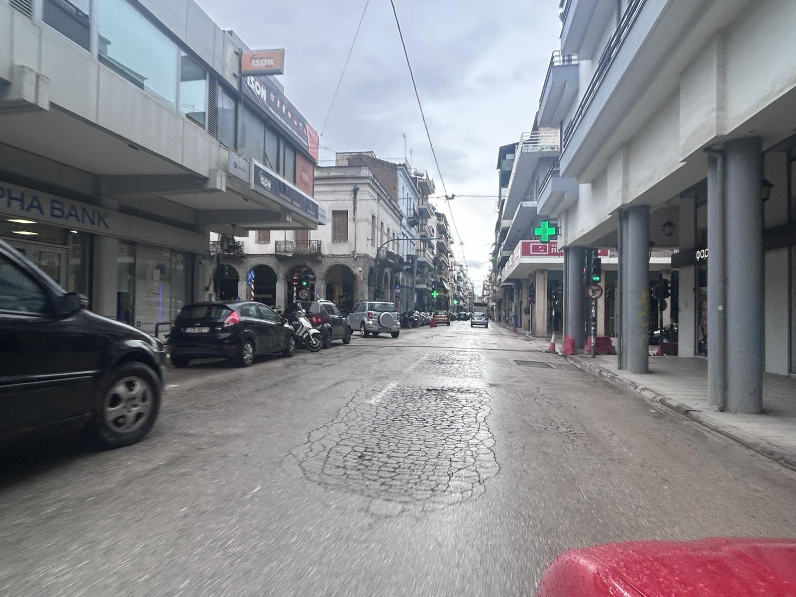 Από δίκυκλο που κινούνταν μεταξύ Κολοκοτρώνη και Αγίου Νικολάου χύθηκε υγρό (χρώμα) με αποτέλεσμα να ανατραπεί άλλο δίκυκλο που ακολουθούσε και να τραυματιστεί σοβαρά ο οδηγός.