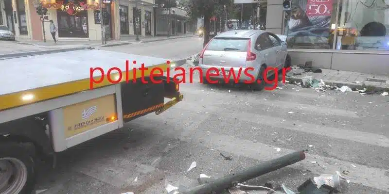 Ο οδηγός ΙΧ που ανέβαινε τη Γούναρη, στο ύψος της Ι. Βλάχου, έπεσε πάνω σε μηχανάκι που εκσφενδόνισε σε βιτρίνα ανθοπωλείου, ξήλωσε ένα φανάρι και “καρφώθηκε” με τη σειρά του στο ίδιο μαγαζί.