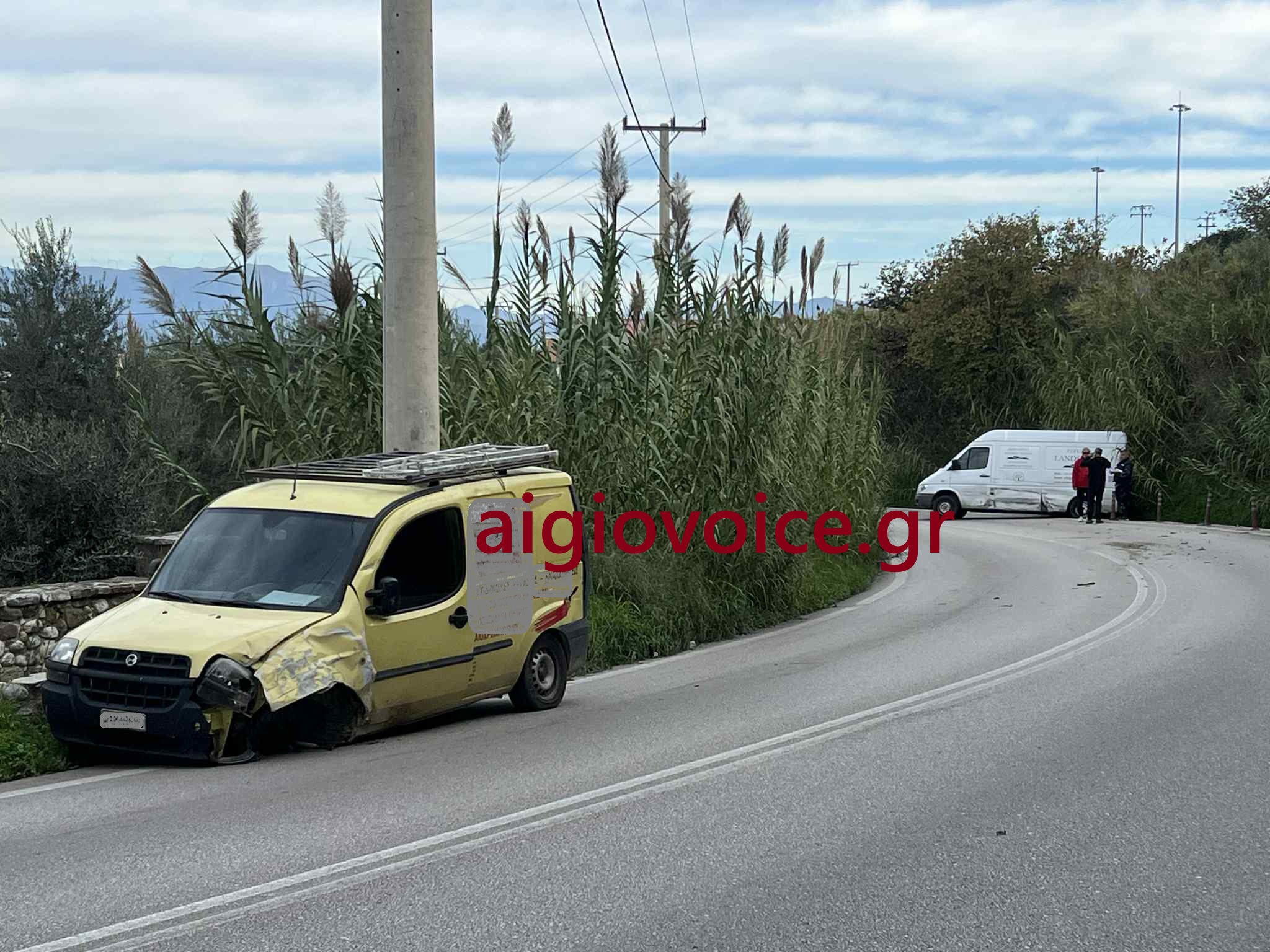 Η σύγκρουση συνέβη πάνω στην παλιά εθνική οδό πριν το Δρέπανο, σε μια απότομη στροφή, ανάμεσα σε ένα βανάκι και ένα ημιφορτηγό.