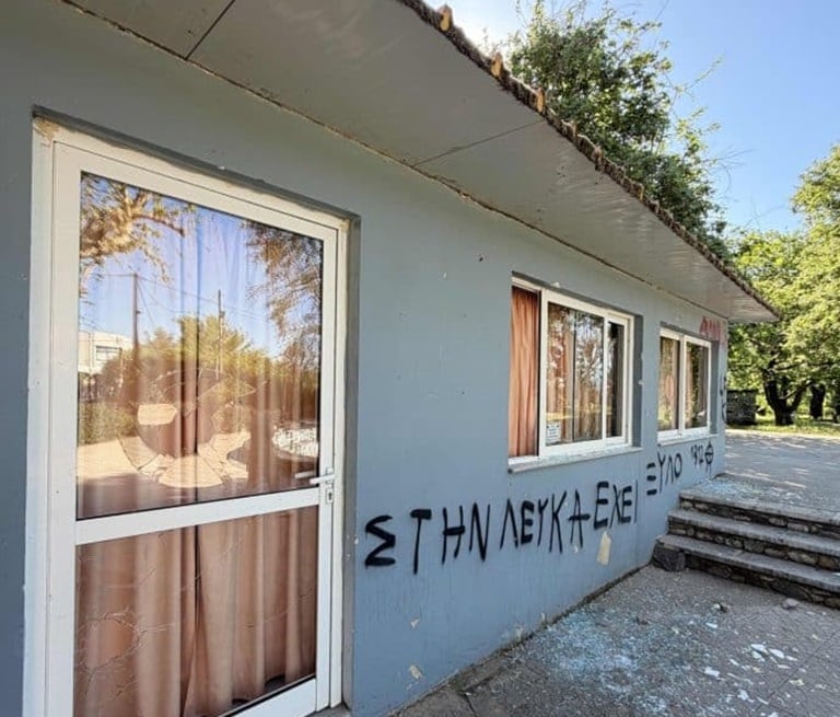 Περίεργη επίθεση και βανδαλισμούς στον Εκπολιτιστικό Σύλλογο Λεύκας στην Πάτρα. Αγνωστοι έσπασαν τα τζάμια με πέτρες και σιδερένια καλύμματα φρεατίων, έγραψαν συνθήματα και προκάλεσαν και άλλες καταστροφές. Το γεγονός κρίνεται άκρως περίεργο, αφού πρόκειται για γραφεία… Πολιτιστικού Συλλόγου. Κανείς δεν μπορεί να εξηγήσει τους λόγους της επίθεσης. Εχουν γραφτεί αντιφασιστικά συνθήματα και συνθήματα κατά των αστυνομικών.