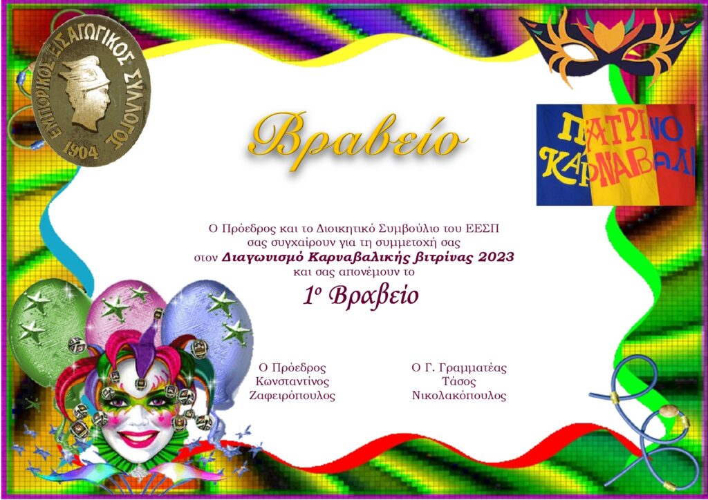 - Μετά το Καρναβάλι πραγματοποιούνταν εκδήλωση για την απονομή των Βραβείων.