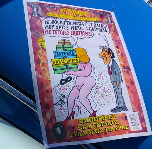 - Σχεδίαζε και τύπωνε ειδική αφίσα με θέμα το Καρναβάλι που μοιραζόταν σε όλα τα καταστήματα και τοποθετείτο στα λεωφορεία σε συνεργασία με το ΚΤΕΛ (για να διαφημίζεται το Πατρινό καρναβάλι), οργανώντας παράλληλα περίοδο εορταστικών-Καρναβαλικών προσφορών, είτε με παρουσίαση στον Εμπορικό Σύλλογο. Ακόμα και εορταστικές Καρναβαλικές γελοιογραφίες στο πνεύμα της εποχής.