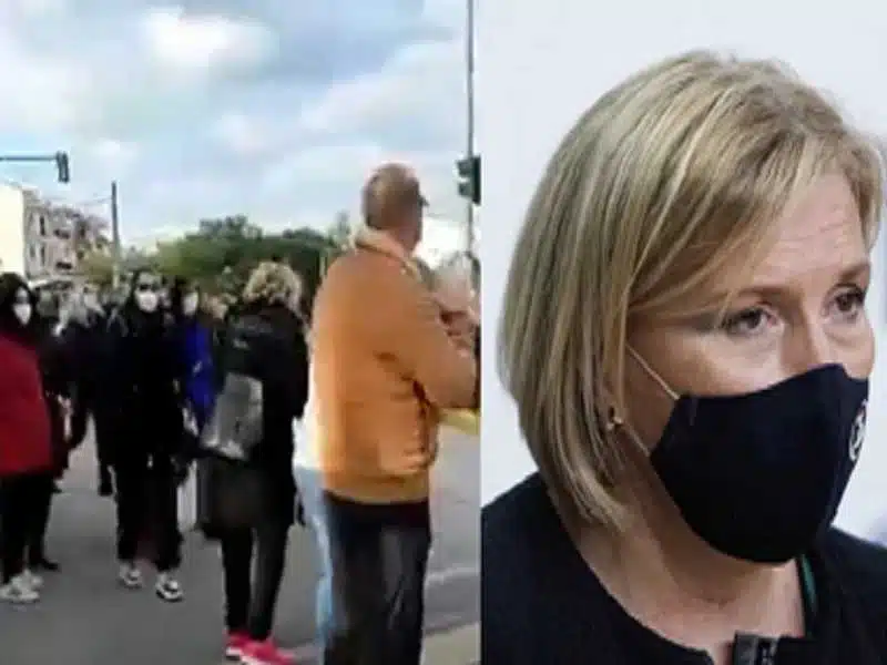 Κρατώντας πανό οι υγειονομικοί φώναζαν «παραιτήσου» και «πάρτε πίσω τις αναστολές».