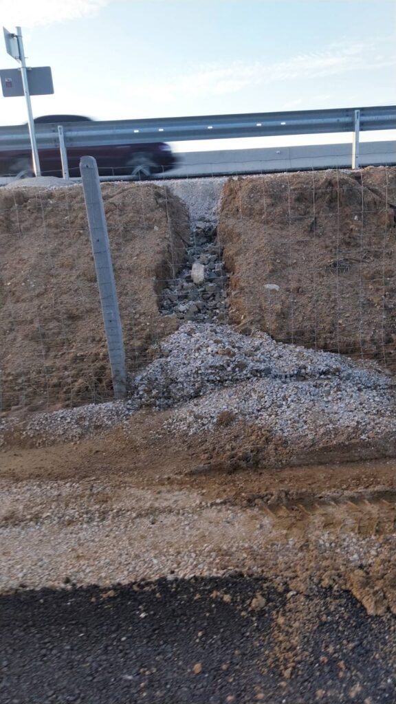 Οι φωτογραφίες από το ύψος της Βάρδας αποκαλύπτουν την αλήθεια: υποχωρήσεις του εδάφους στα πρανή, κακοτεχνίες και σημεία διάβρωσης, πριν καν πέσει ο πρώτος βαρύς χειμώνας.