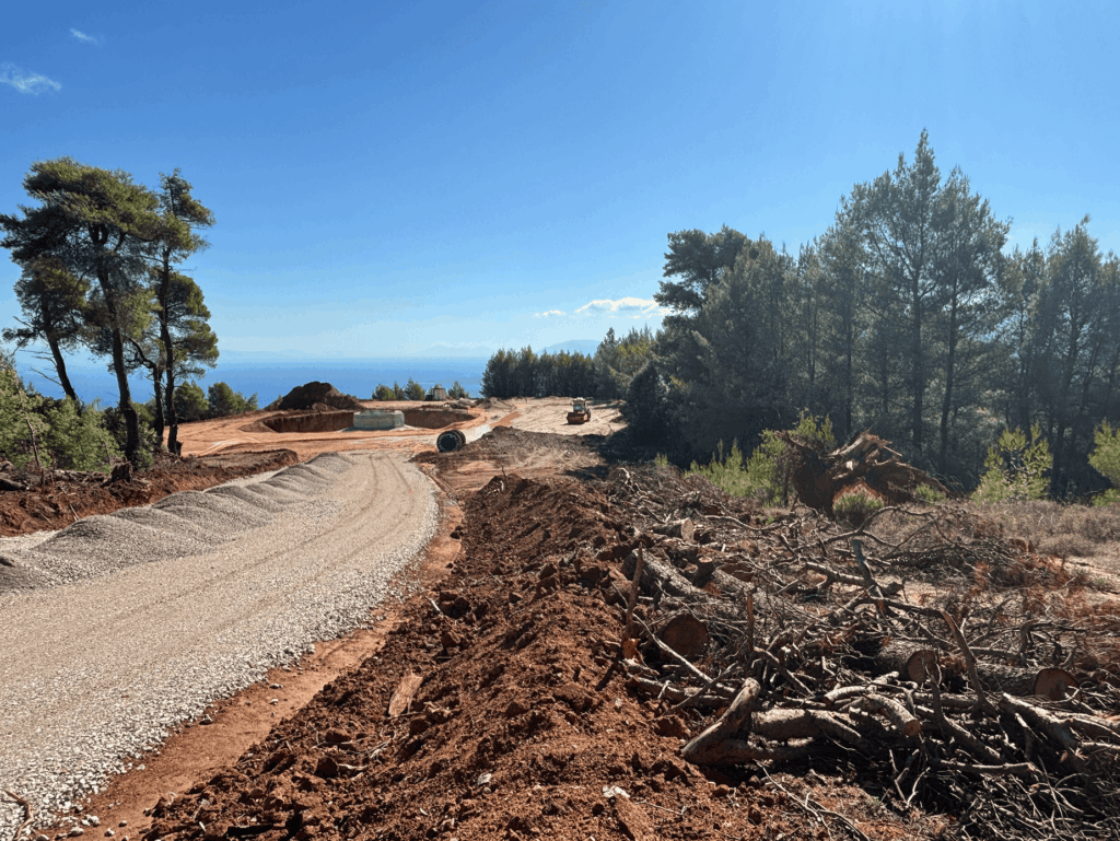 - Αυθαίρετη εναπόθεση υλικών: Επιβεβαιώθηκε επίσης η εναπόθεση προϊόντων εκσκαφής σε επιπλέον έκταση δάσους περίπου 4 στρεμμάτων που εκχερσώθηκε χωρίς την απαιτούμενη έγκριση.