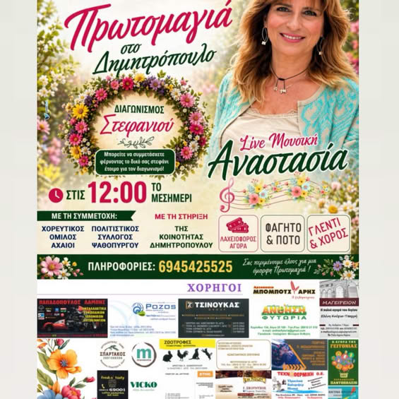 Η εκδήλωση θα πραγματοποιηθεί την 1η Μαΐου στον χώρο του συλλόγου, με ώρα έναρξης στις 12:00 το μεσημέρι, προσφέροντας ένα πλούσιο πρόγραμμα που συνδυάζει μουσική, χορό και παραδοσιακές δραστηριότητες. Κεντρικό στοιχείο της ημέρας θα αποτελέσει η ζωντανή εμφάνιση της τραγουδίστριας Αναστασίας, η οποία αναμένεται να ξεσηκώσει το κοινό και να δημιουργήσει μια ιδιαίτερα ζωντανή ατμόσφαιρα.