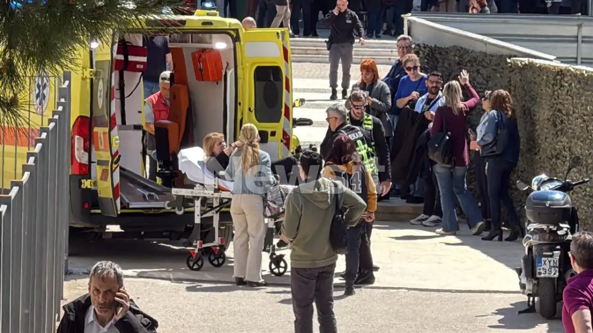 Τρία ασθενοφόρα και δύο μηχανές του ΕΚΑΒ έφτασαν στην περιοχή του Εφετείου ενώ έχουν όλοι τις αισθήσεις τους και μεταφέρονται στον “Ερυθρό Σταυρό”.