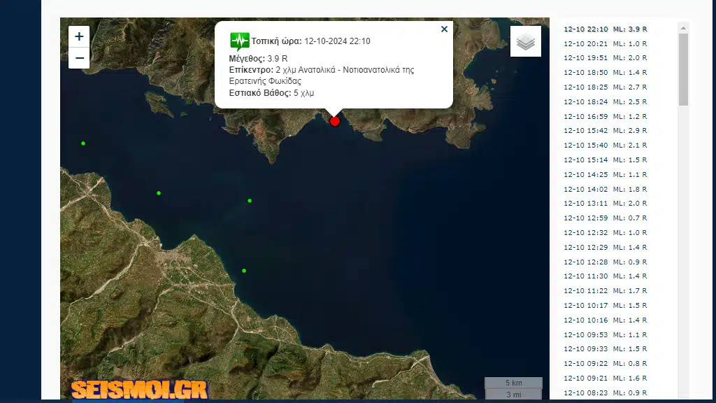 Σεισμική δόνηση μεγέθους 3,9 Ρίχτερ και επίκεντρο στα 12,9χλμ Νοτιοδυτικά από το Γαλαξίδι σημειώθηκε στις 22:10 απόψε (12/10).