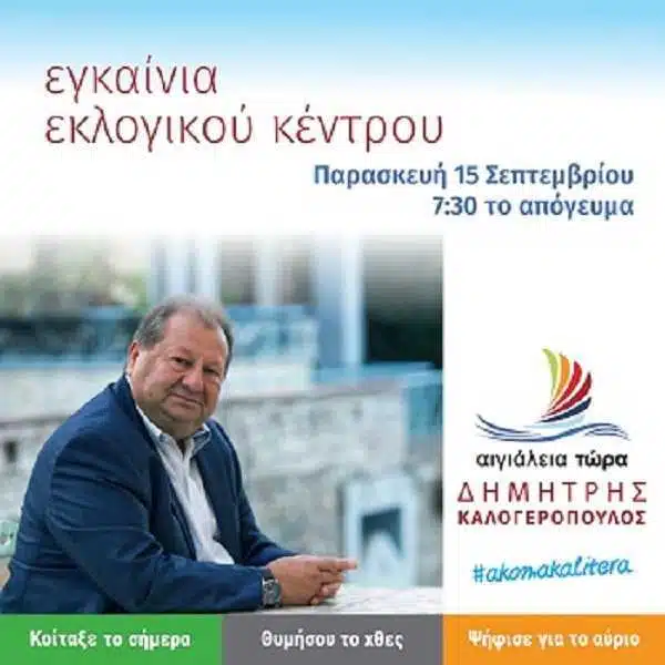 ΑρχικήΑίγιο - Αχαΐα Αυτοδιοικητικές Εκλογές 2023 Σήμερα στις 7.30 μ.μ τα εγκαίνια του Εκλογικού Κέντρου Δ. Καλογερόπουλου Από Aigio Voice 15 Σεπτεμβρίου 2023 FacebookTwitterWhatsAppEmail Βρείτε μας στο Google News. Πατήστε εδώ! Ο Δημήτρης Καλογερόπουλος εγκαινιάζει σήμερα Παρασκευή (15/9) το εκλογικό κέντρο του συνδυασμού του, στην οδό Μητροπόλεως. TagsΔΗΜΗΤΡΗΣ ΚΑΛΟΓΕΡΟΠΟΥΛΟΣ-ΕΓΚΑΙΝΙΑ μερίδιο FacebookTwitterWhatsAppEmail Προηγούμενο άρθροΟλοκληρώθηκε με επιτυχία ο Γ’ κύκλος του Προγράμματος Αγωγής Υγείας στο ΚΕΤΧ ΠατρώνΕπόμενο άρθροΧρήστος Βουλδής: Η πολυπληθής παρουσία των φίλων της παράταξης έδωσε δύναμη και ώθηση για τη συνέχιση της μεγάλης προσπάθειας Aigio Voicehttps://aigiovoice.gr Σχετικά άρθρα Αίγιο - Αχαΐα Σία Αναγνωστοπούλου: Νέα παρέμβαση για τον Οδοντωτό Αίγιο - Αχαΐα Απολογισμός Δράσεων του Κέντρου Πρόληψης «Καλλίπολις» για τον Οκτώβριο Αίγιο - Αχαΐα ΔΗΜ.Τ.Ο. ΑΙΓΙΑΛΕΙΑΣ: Ο Σπηλιόπουλος θα στηρίξει Σοφέτη; Σε φήμες χωρίς αντίκρισμα αποδίδουν πολλοί όσα ακούγονται… - Advertisement - - Advertisement - - Advertisement - - Advertisement - Δείτε ακόμα Αίγιο - Αχαΐα Σία Αναγνωστοπούλου: Νέα παρέμβαση για τον Οδοντωτό Αίγιο - Αχαΐα Απολογισμός Δράσεων του Κέντρου Πρόληψης «Καλλίπολις» για τον Οκτώβριο Αίγιο - Αχαΐα ΔΗΜ.Τ.Ο. ΑΙΓΙΑΛΕΙΑΣ: Ο Σπηλιόπουλος θα στηρίξει Σοφέτη; Σε φήμες χωρίς αντίκρισμα αποδίδουν πολλοί όσα ακούγονται… Αίγιο - Αχαΐα ΕΛ.ΑΣ.: Οι συλλήψεις σε Αιτωλοακαρνανία και Ηλεία Αίγιο - Αχαΐα Το Αστυνομικό Δελτίο για τη σύλληψη ανηλίκων μετά από ξυλοδαρμό