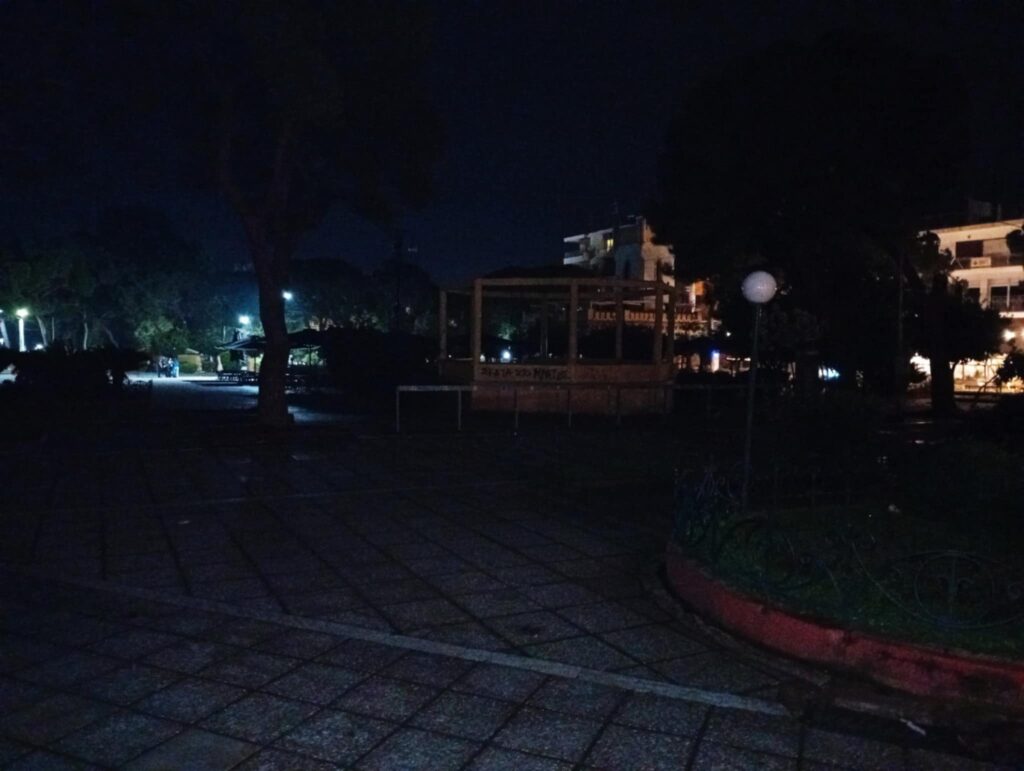 Οι φωτογραφίες μιλούν από μόνες τους: πλήρης εγκατάλειψη. Ένα σημείο που θα έπρεπε να σφύζει από ζωή, να είναι φωτισμένο και να εκπέμπει την εορταστική ατμόσφαιρα των ημερών, παραμένει βυθισμένο στο σκοτάδι.Ο δημοτικός φωτισμός –η ελάχιστη υποχρέωση της δημοτικής αρχής προς τους δημότες και τους επισκέπτες– εμφανώς καμένος, χωρίς καμία μέριμνα αποκατάστασης.