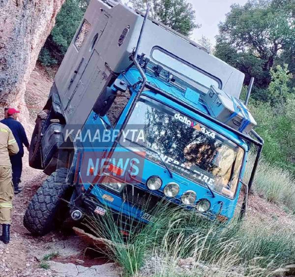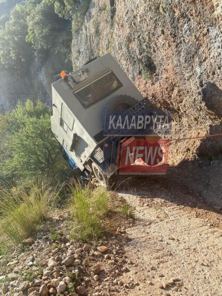 Το βαρύ όχημά τους, με τους ίδιους μέσα, ήταν έτοιμο να πέσει σε χαράδρα.
