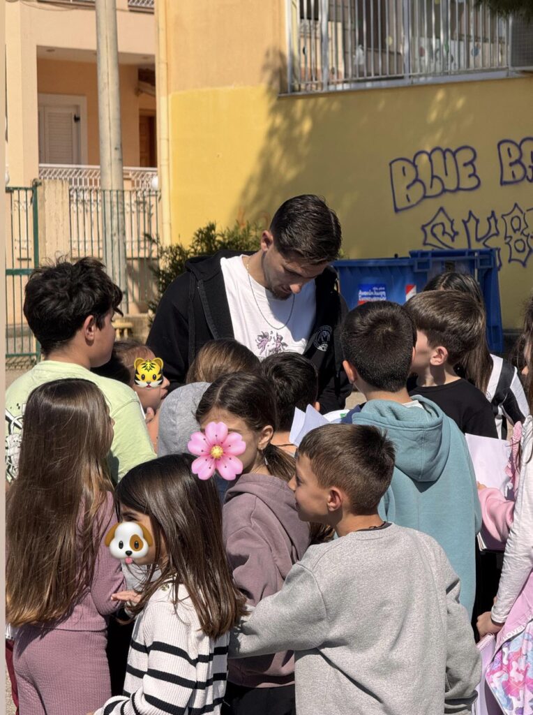 Η επίσκεψη στο 9ο Δημοτικό Σχολείο άφησε το δικό της αποτύπωμα, επιβεβαιώνοντας ότι ο αθλητισμός, πέρα από τίτλους και αποτελέσματα, είναι πάνω απ’ όλα σχέση, έμπνευση και κοινή πορεία με την κοινωνία.