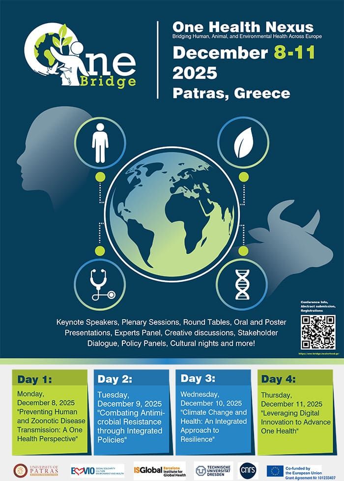 Το συνέδριο υλοποιήθηκε στο πλαίσιο του ευρωπαϊκού έργου ONE-Bridge (One Health Nexus: Bridging Human, Animal, and Environmental Health Across Europe), το οποίο επιδιώκει να προωθήσει την διεπιστημονική συνεργασία και να αναπτύξει κοινές στρατηγικές για την αντιμετώπιση πολυδιάστατων υγειονομικών προκλήσεων, όπως οι ζωονόσοι, η μικροβιακή αντοχή, οι κίνδυνοι στις αλυσίδες τροφίμων και οι επιπτώσεις της κλιματικής αλλαγής.