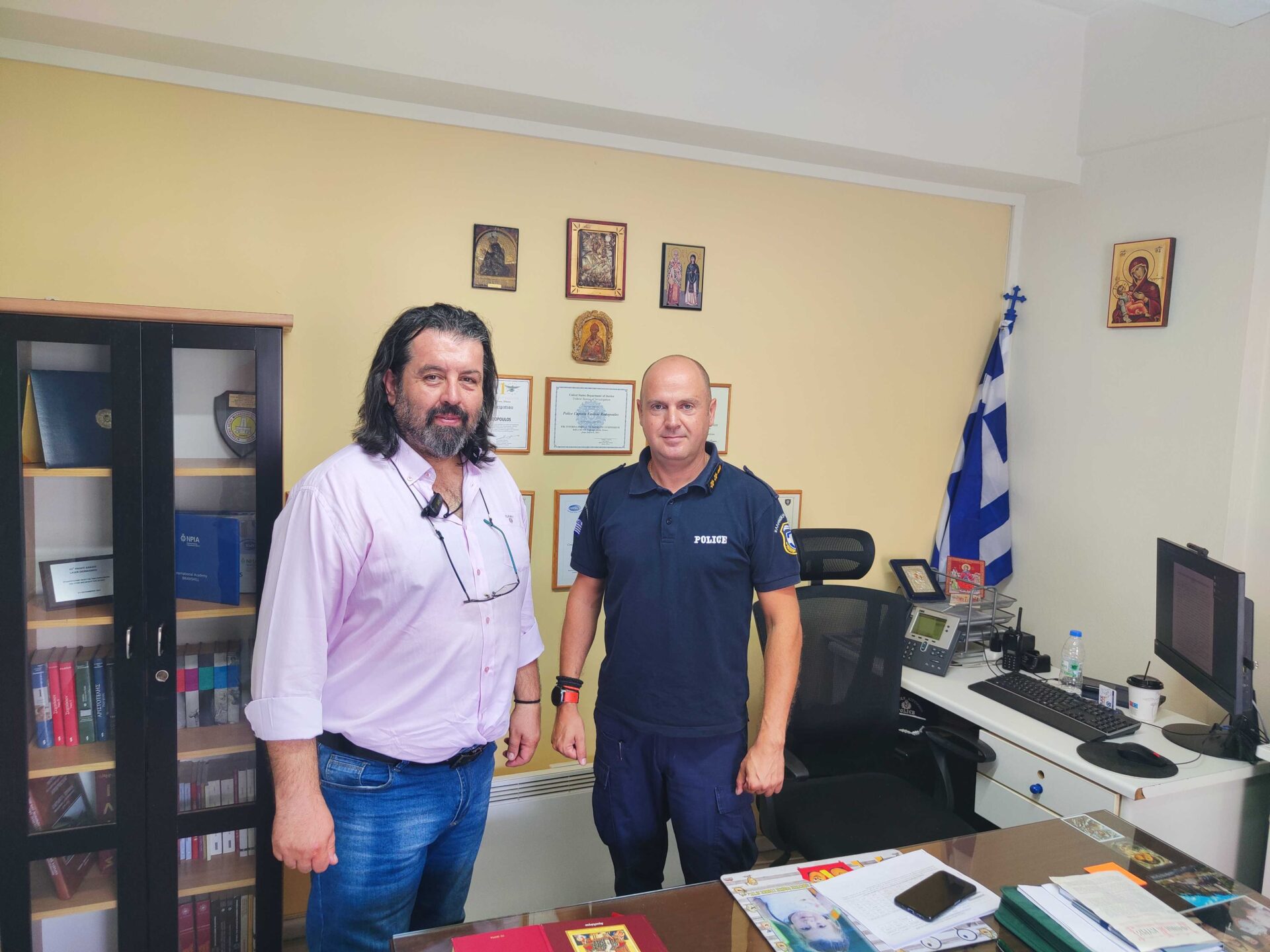 Την Παρασκευή 22 Σεπτεμβρίου πραγματοποίησα εθιμοτυπική επίσκεψη στα γραφεία του Διοικητή του Αστυνομικού Τμήματος Αιγιαλείας κου Βασίλη Ροδόπουλου ως π. Πρόεδρος του Εμπορικού Εισαγωγικού & Επιχειρηματικού Συλλόγου Αιγιαλείας αλλά και ως υποψήφιος δημοτικός σύμβουλος με το συνδυασμό “Αιγιάλεια Μαζί για το αύριο” και επικεφαλής τον κ. Χρήστο Γούτο.