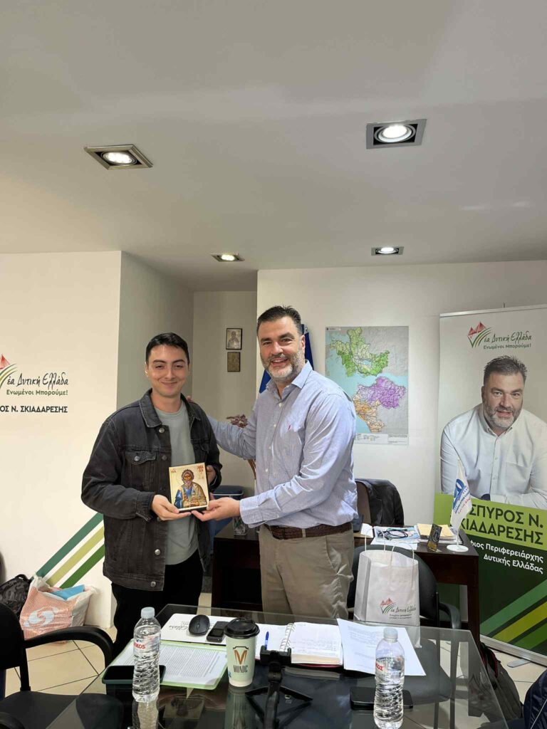 Συνάντηση με τα μέλη του Γραφείου Πόλης τη ΠΑΣΠ ΑΕΙ Πάτρας είχε ο επικεφαλής της περιφερειακής παράταξης «Νέα Δυτική Ελλάδα», Σπύρος Ν. Σκιαδαρέσης, με βασικό θέμα την υψηλή τιμή του φοιτητικού εισιτηρίου στην αστική συγκοινωνία της Πάτρας.