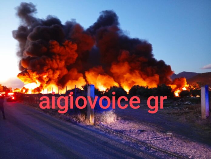 ΑΙΓΙΟ: Μεγάλη πυρκαγιά στη βιομηχανική περιοχή Τέμενης – Ολοκληρωτική η καταστροφή επιχείρησης ανακυκλώσιμων-(ΒΙΝΤΕΟ)