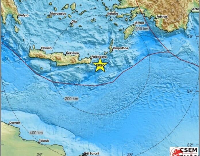 Ισχυρός σεισμός 5 Ρίχτερ ανοιχτά της Κρήτης – Σεισμική δόνηση κοντά στη Ζάκρο Λασιθίου