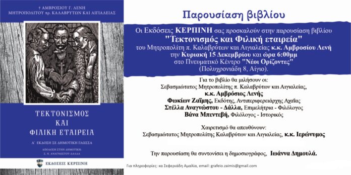 Παρουσίαση βιβλίου «Τεκτονισμός και Φιλική Εταιρεία» του Σεβασμιωτάτου Μητροπολίτη π. Καλαβρύτων και Αιγιαλείας, κ Αμβροσίου Λενή