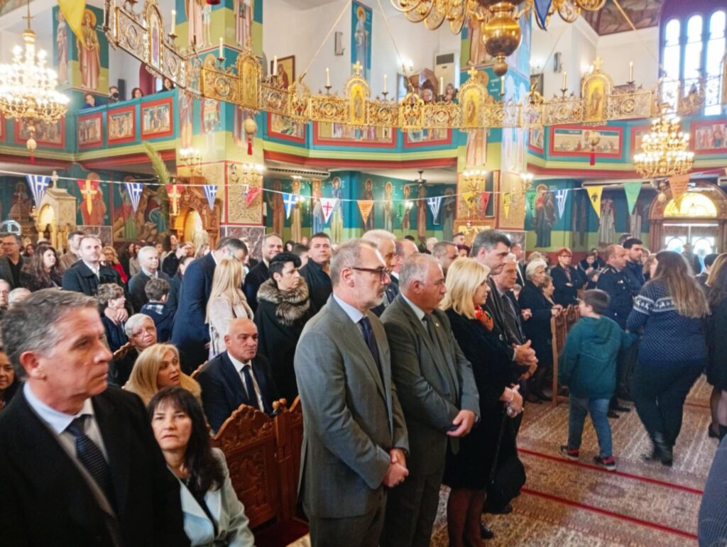 Πλήθος πιστών στην ασφυχτικά γεμάτη εκκλησία αλλά και παρουσίες από τον πολιτικό, αυτοδιοικητικό και επιστημονικό κόσμο της περιοχής. Ανάμεσά τους, ο πρώην Υφ. Εξωτερικών Ανδρέας Κατσανιώτης, ο δήμαρχος Αιγιαλείας Τ. Ανδριόπουλος και ο επικεφαλής της αξιωματικής αντιπολίτευσης στο Δημοτικό Συμβούλιο, Χρήστος Γούτος.