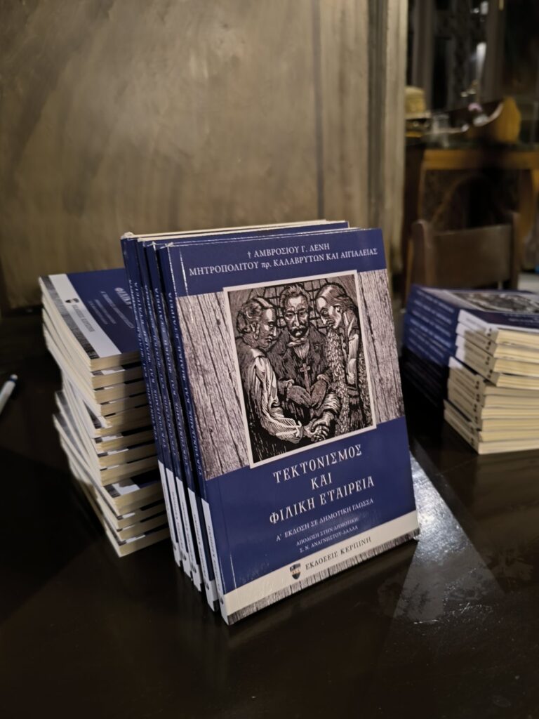 Εντός του ιστορικού ιερού ναού Αγ. Γεωργίου Καρύτση των Αθηνών, παρουσία ενός θερμού ακροατηρίου αποτελούμενου από μέλη του ποιμνίου της ενορίας, φιλομαθείς αλλά και ευσεβείς πιστούς από περιοχές της πρωτεύουσας, οι Εκδόσεις Κερπινή παρουσίασαν το απόγευμα της Τετάρτης 17 Δεκεμβρίου μια νέα, την 4η κατά σειρά, επανέκδοση του βιβλίου «Τεκτονισμός και Φιλική Εταιρεία» του Σεβασμιωτάτου πρώην Μητροπολίτου Καλαβρύτων και Αιγιαλείας κ.κ. Αμβροσίου.