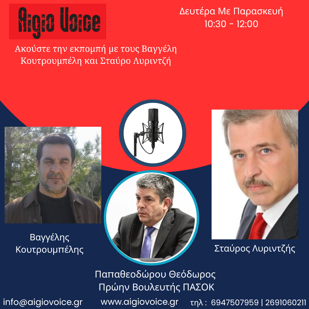 Στη ραδιοφωνική εκπομπή «Φωνή της Αιγιάλειας» του Aigio Voice Radio μίλησε ο πρώην βουλευτής του ΠΑΣΟΚ, Θεόδωρος Παπαθεοδώρου, σχολιάζοντας τις πολιτικές εξελίξεις και την πορεία προς τις επόμενες εθνικές εκλογές.