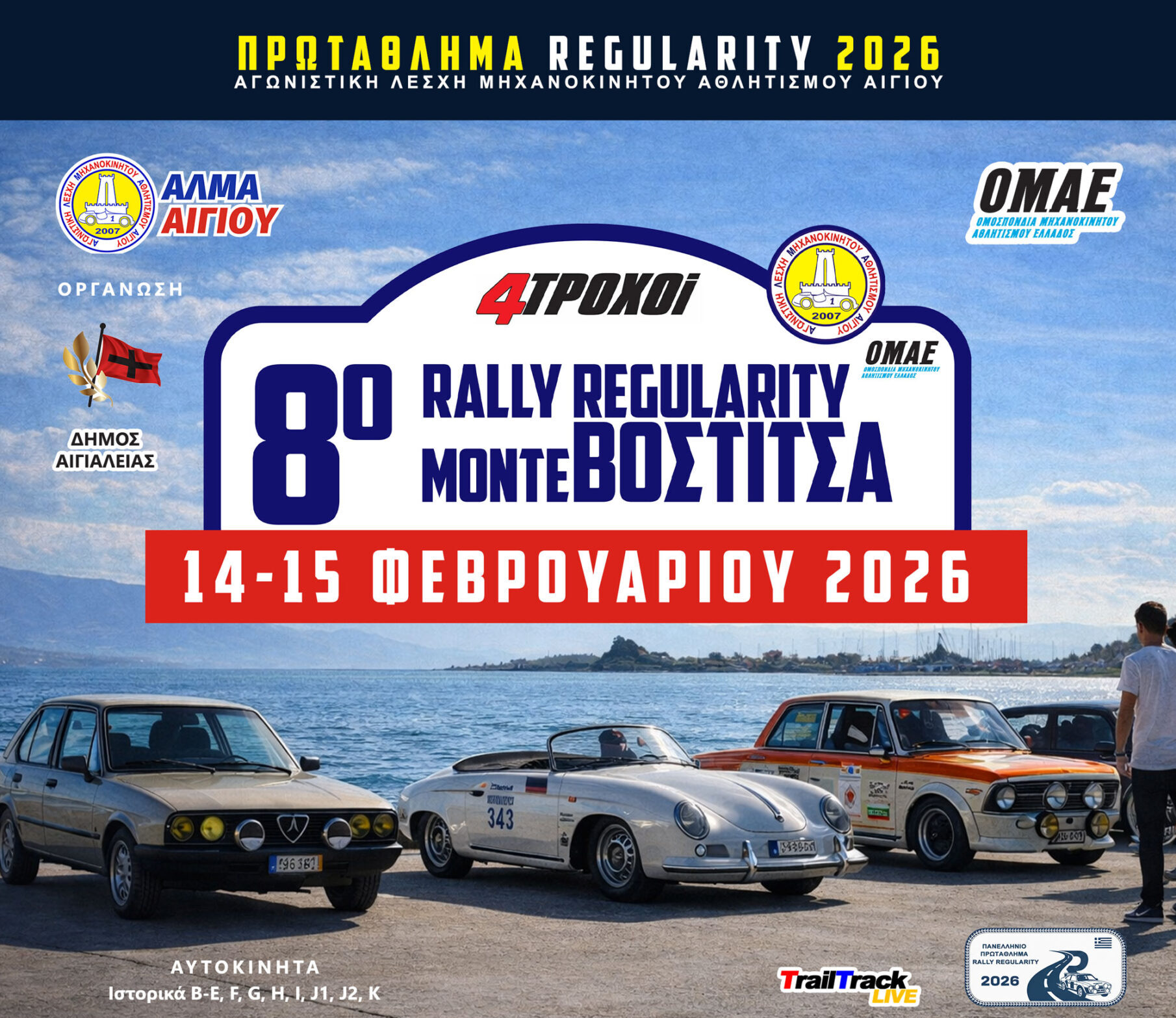 Η ΑΛΜΑ Αιγίου διοργανώνει αύριο και μεθαύριο και με 26 συμμετοχές, το 8ο 4ΤΡΟΧΟΙ Rally Regularity Monte Vostitsa, έναν αγώνα που πλέον έχει καθιερωθεί ως σημείο αναφοράς στο Πρωτάθλημα Regularity της ΟΜΑΕ.
